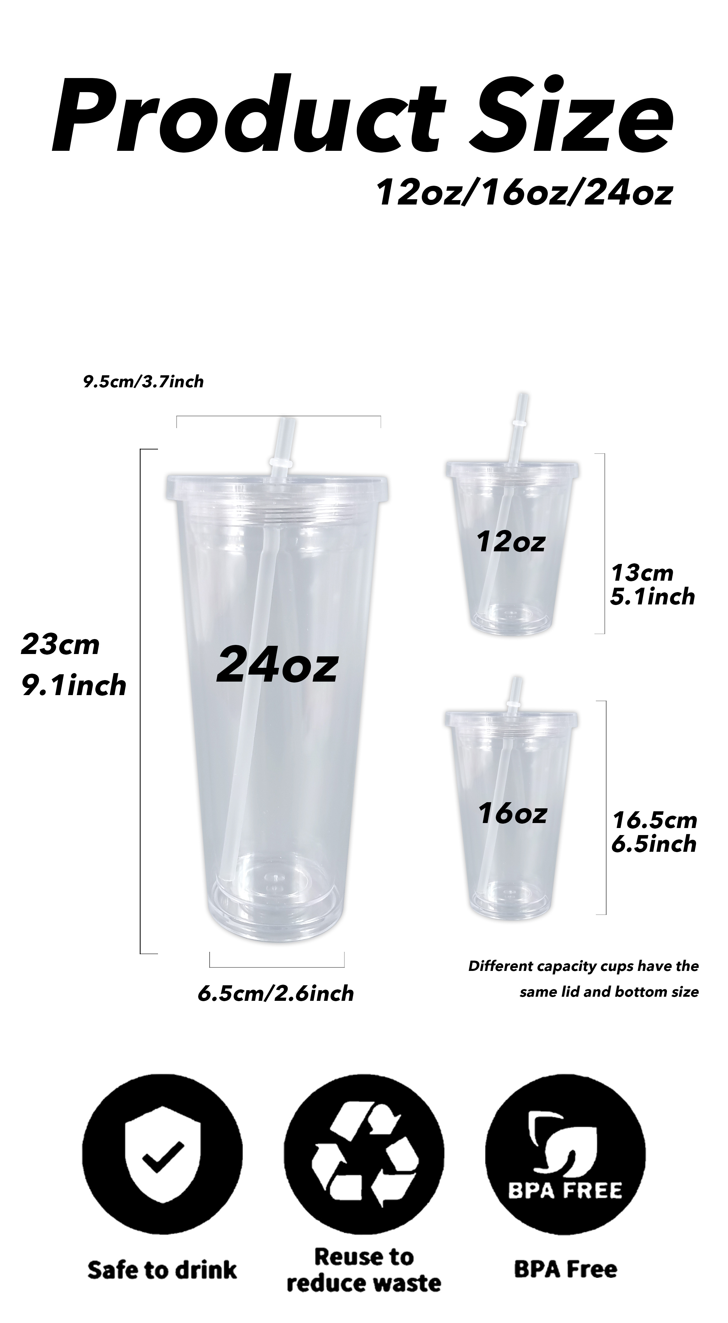 Capacités: 12 oz/16 oz/24 oz